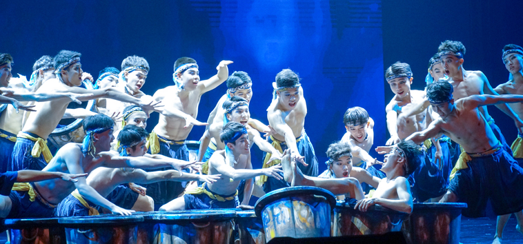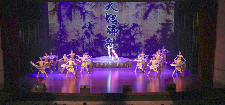 晚会在洋溢着青春气息的健美操《舞动青春》中拉开序幕。伴随着声情并茂的朗诵《读中国》,全场观众一起步入时间长河,感悟中华民族的厚重历史和灿烂文化。舞蹈《砚魂》,讴歌了砚文化所蕴含的博大与华美。舞蹈《母仪天下》展示的是善良、博爱的龙母形象,赞美了中华民族的传统美德。广场舞《唱脸谱》,反映了追求精神生活、展现文明形象的群众艺术风采。而由广东工业大学舞蹈团献演的舞蹈《染天蓝》,则表现了欢快、平和、自信的岭南文化精神,体现了其作为全国大学生艺术展演一等奖作品的气派。女声独唱《银色的夜,金色的梦》唱出了每个人心中小小的梦,更唱出了中华民族伟大复兴的梦。另一曲女声独唱《阳光路上》,表现了一路阳光、一路奋进的喜悦。男声独唱《老师,我总想起你》唱出的,是立德树人、甘为人梯的一份师恩。琵琶独奏《唱支山歌给党听》,表达了对党的赤诚之心。以合唱方式唱响的歌曲《我和我的祖国》,抒发了全体师生热爱祖国、依恋祖国的真挚情怀。最后,校领导和全场师生共同高歌《歌唱祖国》,向伟大的祖国致以崇高的敬礼。这时候,歌声嘹亮,群情踊跃,台上的演员和台下的观众共同挥动手中的小国旗,全场掀起红色的波浪,晚会气氛由此达到高潮。