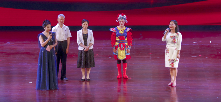 晚会特别安排了《致敬·身边的榜样》环节,邀请优秀教工、优秀学生代表上台接受全场致敬。在这些身边的榜样中,有与共和国同龄的老同志,有广东高校教学名师,有资深思政课教师,有科研达人,有长期从事学生工作的老辅导员,有最美后勤人,还有省级标杆党支部负责人,以及援藏学子、带班党员。他们的感言朴实无华,但他们不忘初心、牢记使命的精神却感人肺腑。当他们从不同角度表达爱岗敬业、报效祖国的坚定决心,以及刻苦学习、健康成长的美好心愿,全场抱以热烈的掌声,向这些身边的榜样致敬。