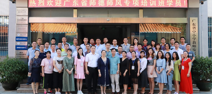 根据教育部《关于进一步加强和改进师德建设的意见》和《关于建立健全中小学师德建设长效机制的意见》,按照习近平总书记提出的 “四有”教师要求,为引导教师立德树人,为人师表,不断提升人格修养和学识修养,努力建设一支师德高尚、业务精湛、结构合理、充满活力的中小学教师队伍,我校承担了广东省2019年中小学幼儿园教师、校(园)长省级培训项目师德师风专项培训任务,由马克思主义学院具体承办。
