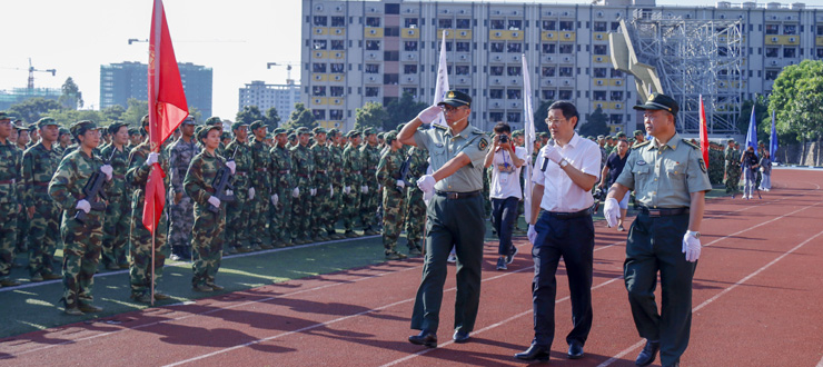 大会在庄严的国歌中开幕,升国旗、奏国歌,全体肃穆敬礼。随后,吴业春代表学校检阅各方队,他依次走过62个连队,向新生致以亲切的问候,学子们以响亮的口号作出回应。接着,分列式汇报表演开始,62个方阵英姿飒爽地依次走过主席台接受检阅,每个连队都精神抖擞,斗志昂扬,用最好的姿态展示半个月以来艰苦训练的成果。