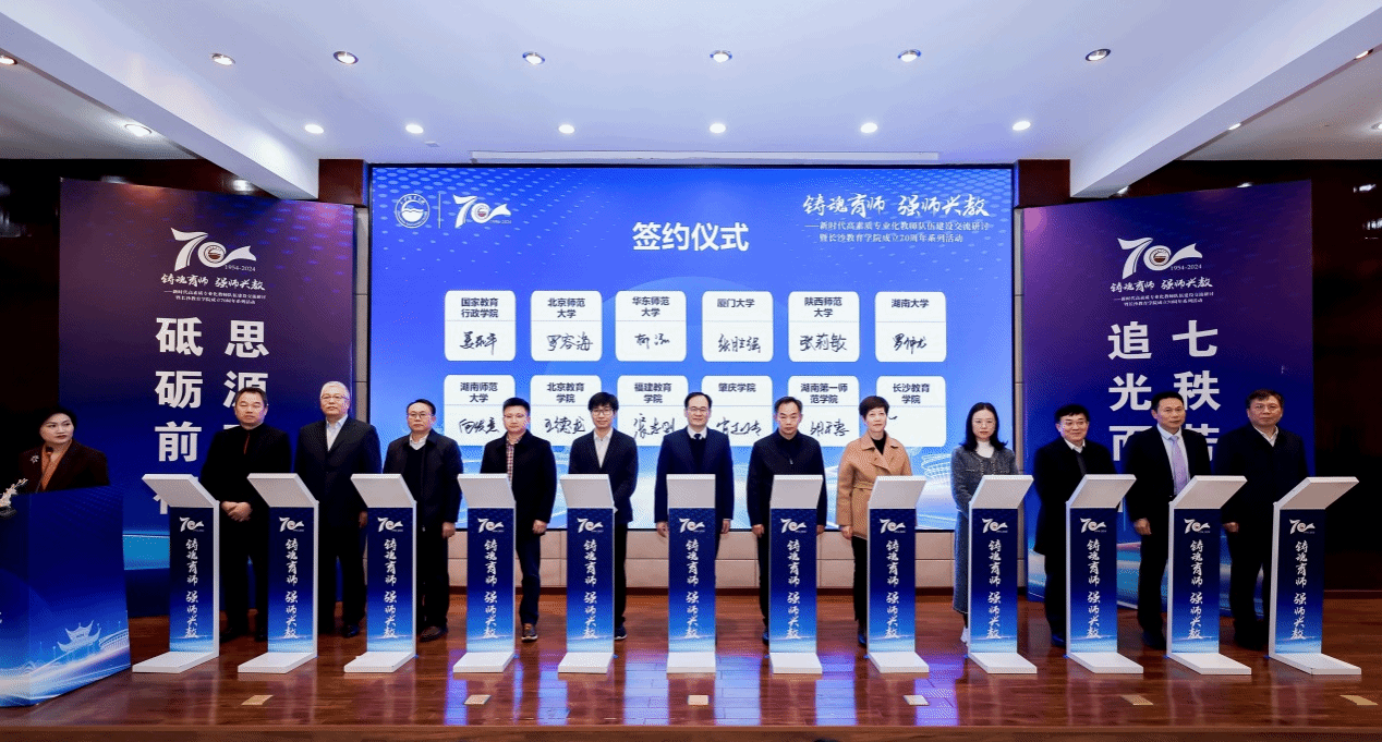 会上,长沙教育学院与国家教育行政学院、北京师范大学、华东师范大学、厦门大学、陕西师范大学、湖南大学、湖南师范大学、肇庆学院等11所高校签订合作协议,建立教师教育合作共享交流平台。