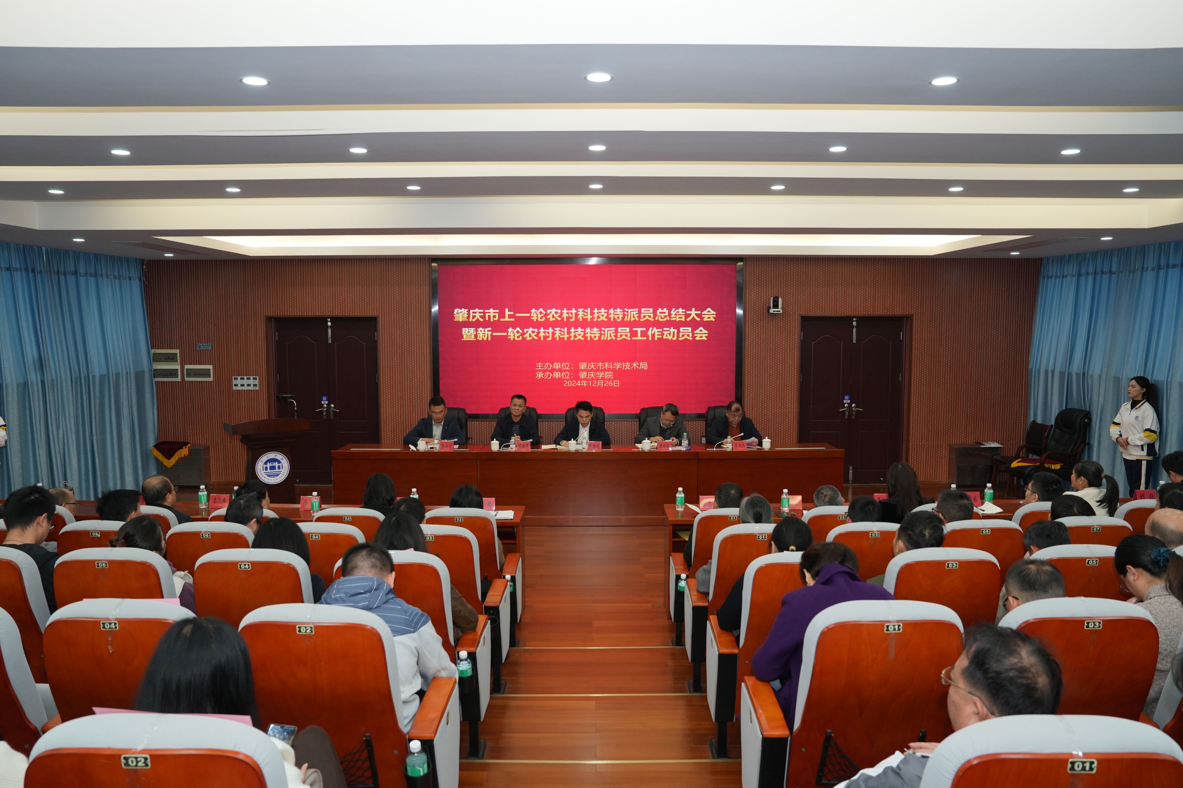 本网讯 12月26日,肇庆市上一轮农村科技特派员总结大会暨新一轮农村科技特派员工作动员会在我校举行。市科技局局长罗盛斌、副校长胡文涛、帮扶队长刘怡军出席,会议由市科技局副局长李文杰主持,肇庆各县区科技主管部门负责同志及业务骨干、科学技术部负责人、肇庆学院,肇庆市农林科学院农村科技特派员工作站全体人员共100余人参加会议。