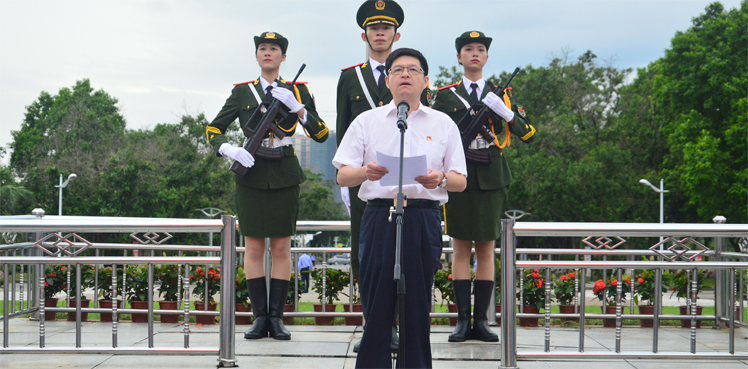 本网讯 9月2日,新学期第一天,我校在国砚广场举行隆重的升旗仪式,表达全体师生热爱祖国的真挚情怀、祝福祖国的深厚情意、报效祖国的豪迈斗志、建设祖国的坚定决心。校领导曾桓松、吴业春出席仪式,校领导谢冠华主持,有关职能部门负责人及二级学院师生代表1000多人参加活动。