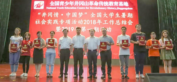 本网讯 7月25日,“井冈情·中国梦”全国大学生暑期社会实践专项活动2018年工作总结会暨2019年第一期活动结业式在全国青少年井冈山革命传统教育基地举行,我校“学生会横向党支部井冈山重走红军路实践队”的全体队员参加。