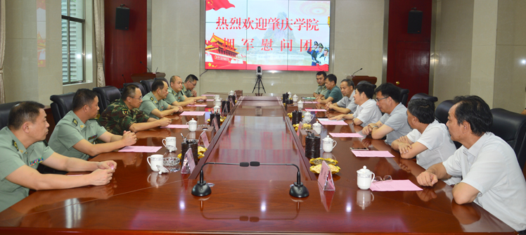 本网讯 八一建军节即将来临。7月25日,校党委书记曾桓松率领学校慰问团来到肇庆军分区,向军分区官兵献上节日的慰问。校党委副书记谢冠华参加活动。