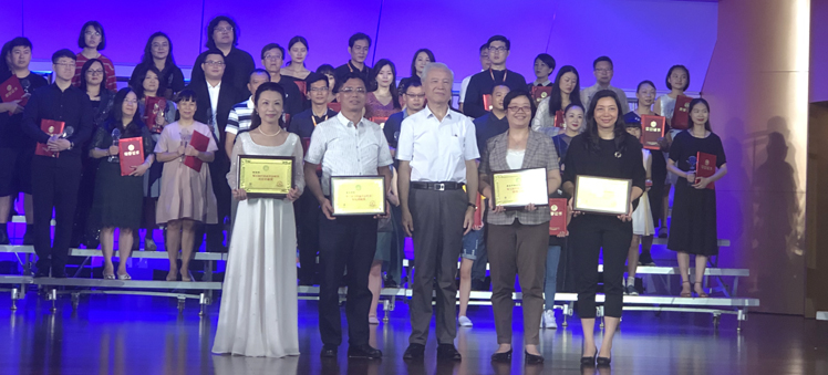 本网讯 童声璀璨,乐韵悠扬。7月25日,在位于我校的肇庆艺术中心剧场,一个隆重热烈的颁奖典礼和歌咏大会为第七届中国童声合唱节划上了完美的句号。校党委副书记、主持行政全面工作副校长吴业春出席闭幕式,场馆中心主任、音乐学院党委书记植可焕代表我校接受本届童声合唱节“突出贡献奖”荣誉牌匾。