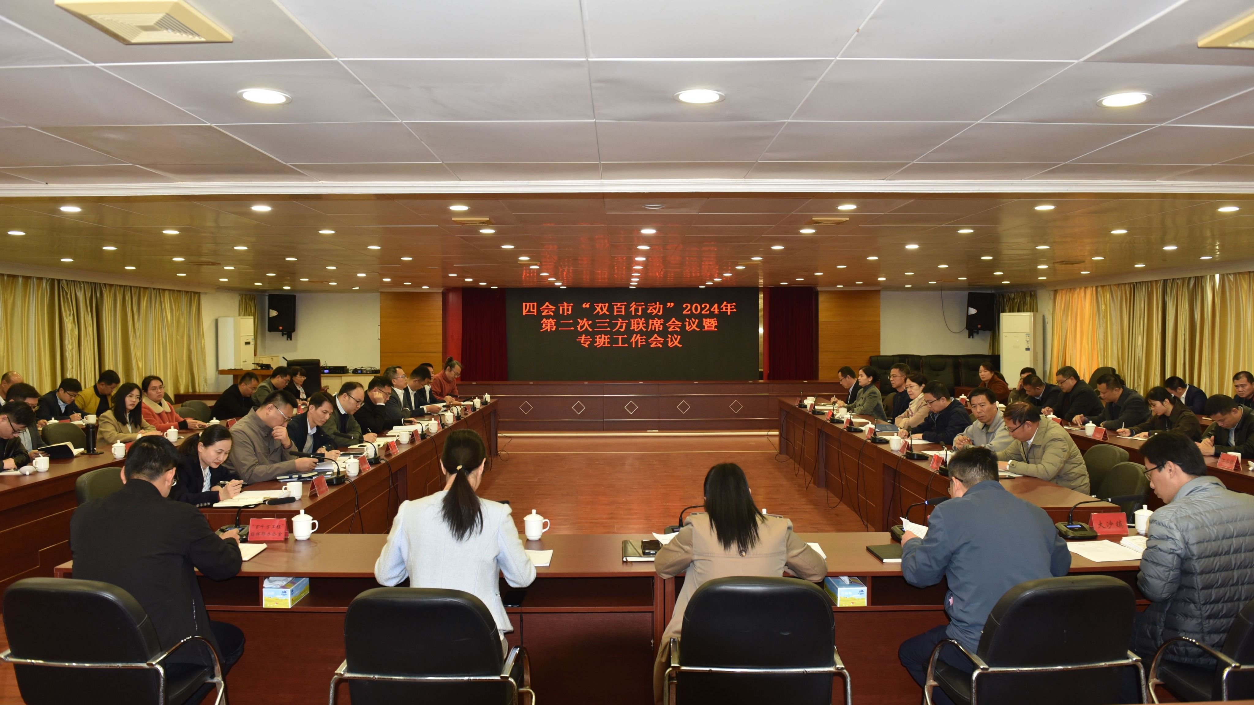 本网讯 为进一步深化校地交流合作,共同推动“百千万工程”走深走实,12月31日,肇庆学院一行赴四会市召开“双百行动”2024年第二次三方联席工作会议。我校党委书记谢冠华、副校长胡文涛,广东科学技术职业学院党委副书记、校长张力、党委副书记江乐忠,四会市委副书记、市长吴鋆、副市长黎一斐等出席了本次会议。黎一斐主持会议。