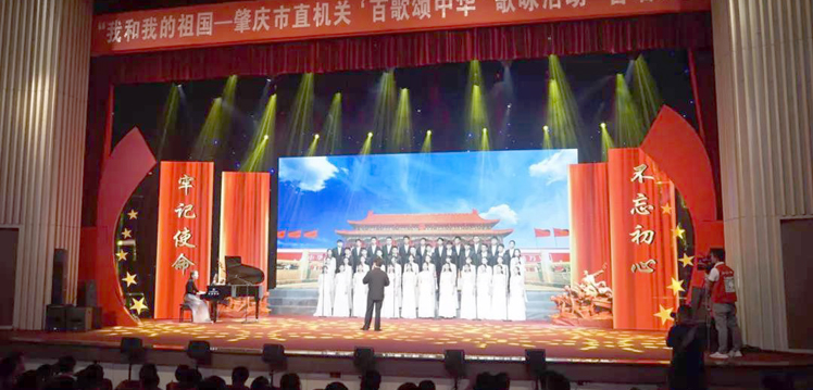 本网讯 7月18日,由市直机关工委组织举办的“我和我的祖国——肇庆市直机关‘百歌颂中华’歌咏活动”隆重举行。经过此前进行的预赛,19个市直系统党委派出的代表队进入当晚的决赛。决赛中,代表我校参赛的音乐学院合唱团凭借扎实的基本功和出色的现场表现荣获第一名,为学校争得了荣誉。