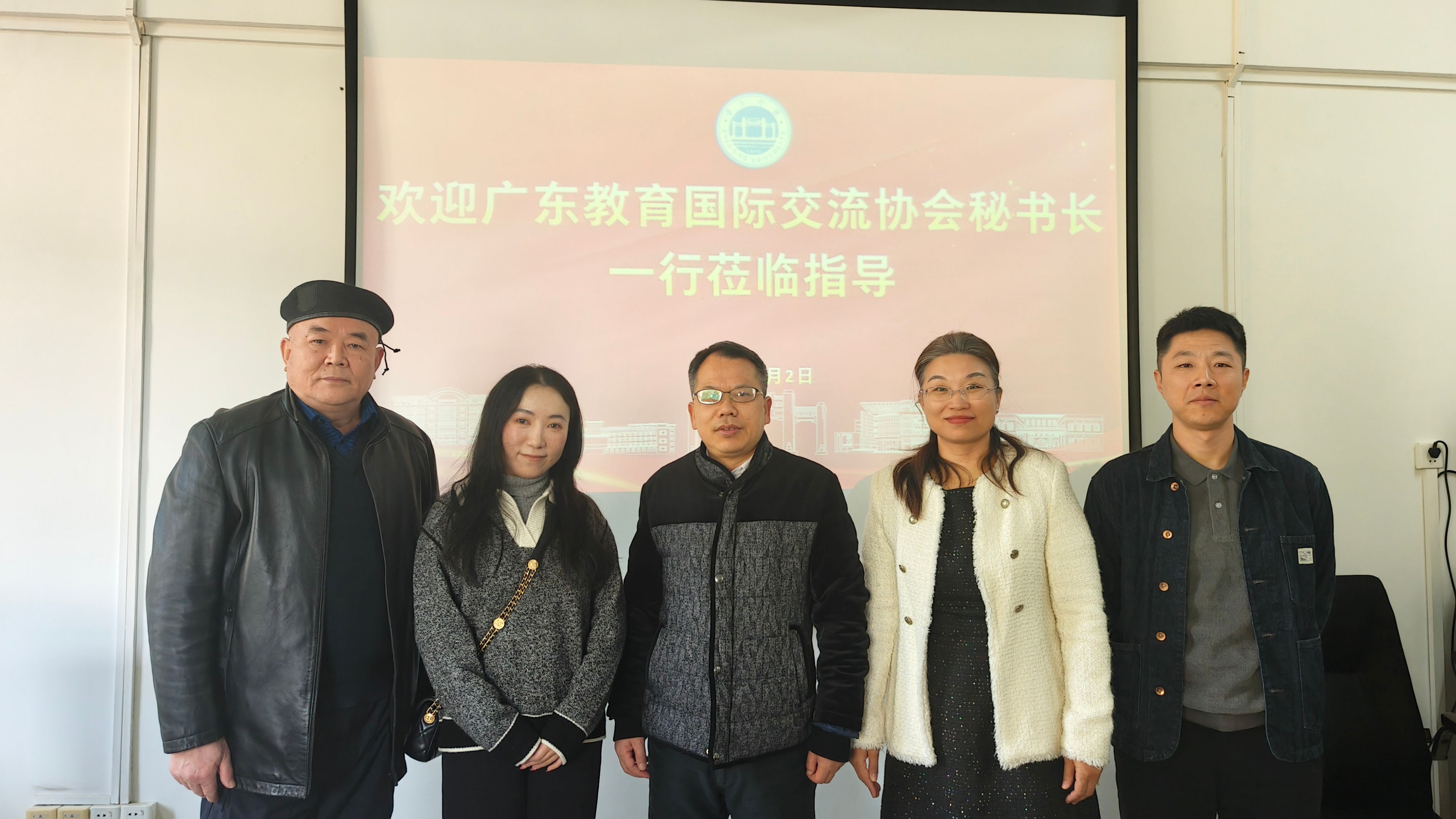 本网讯 1月2日,广东教育国际交流协会秘书长仲铭锦携团队莅临我校交流指导,副校长胡文涛热情接待。