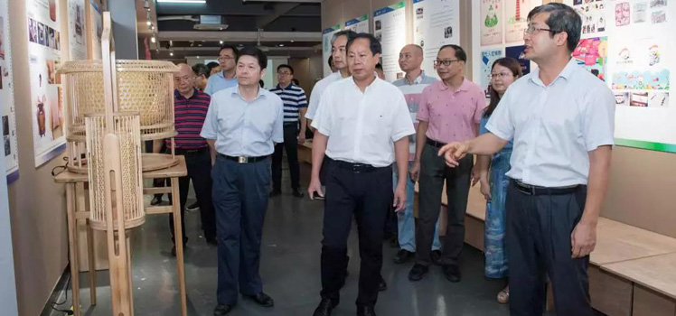 在曾桓松、吴业春的陪同下,李劲堃、蔡拥华一行参观了美术学院教学成果展,并听取学院负责人关于学科建设、师资队伍建设、科研成果、工作室模式等办学情况的介绍,充分感受我校美术教育的成果和气象。