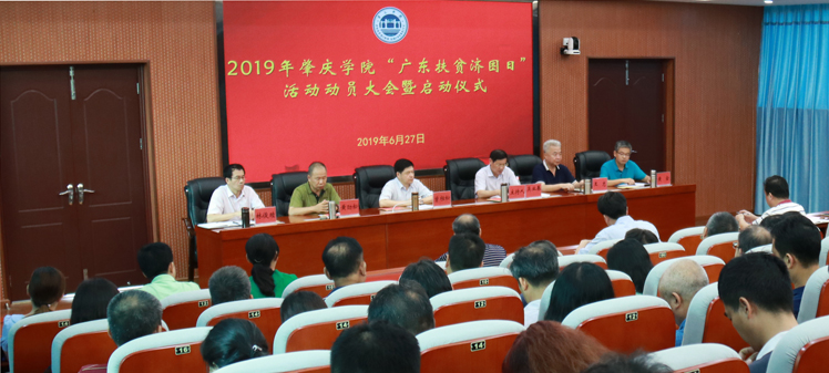 本网讯 6月27日,我校举行2019年“广东扶贫济困日”活动动员大会暨启动仪式,总结部署扶贫工作,助力乡村振兴和脱贫攻坚。校党委书记曾桓松出席,副校长吴业春主持,校党委副书记黄劲松,副校长王忠、林俊睦,校长助理黄金出席,有关单位负责人参加会议。