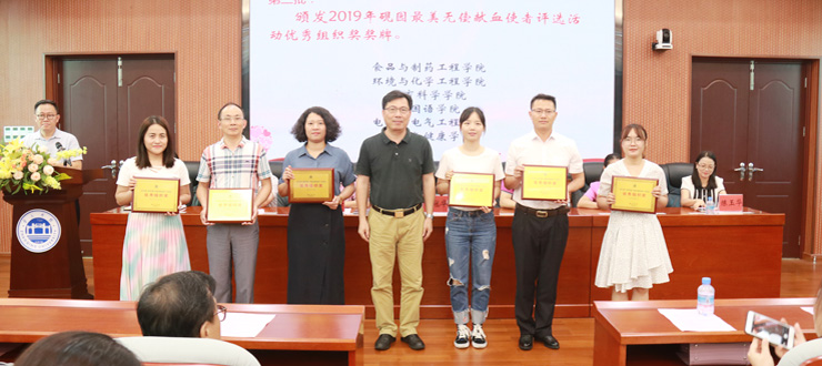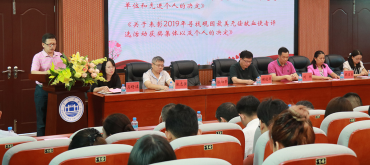本网讯 6月20日,我校举行2019年无偿献血工作总结表彰大会。校党委副书记谢冠华出席,市献血办、市中心血站、学工处、校医院、校团委以及二级学院有关负责人、辅导员、学生代表参加。