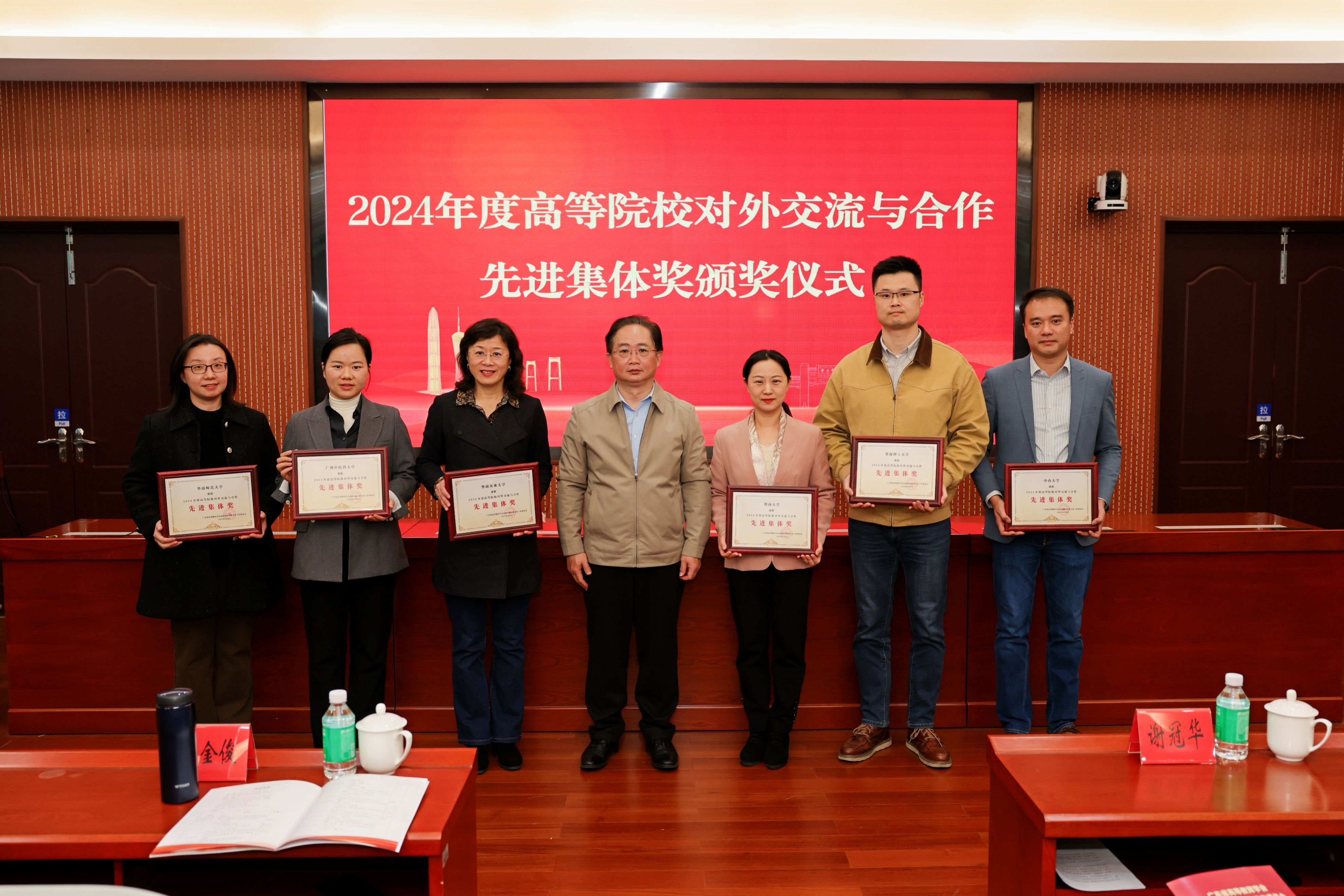随后,中山大学国际交流合作处副处长余伯俊宣读了2024年度高等院校对外交流与合作先进集体奖、优秀个人奖、外国专家国际合作奖的获奖名单。谢冠华和李金俊分别为获得先进集体奖的院校代表颁奖,以表彰他们在对外交流与合作工作中所做出的突出贡献,激励全省高校进一步加大对外交流与合作力度,提升教育国际化水平。