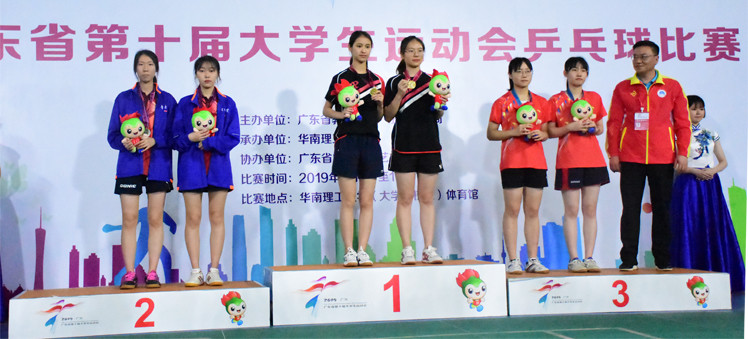 在女子乒乓球甲组团体比赛中,我校代表队连克南方医科大学、广东海洋大学等队伍,在以2分之差错失四强之后,与华师女团激烈竞争中胜出,获得第五名。乙A组女团也连克广州大学、广州中医药大学等队伍,最终获八名。另外,在女子乒乓球乙A组比赛中,我校还获得混双第4名和女双第8名。
