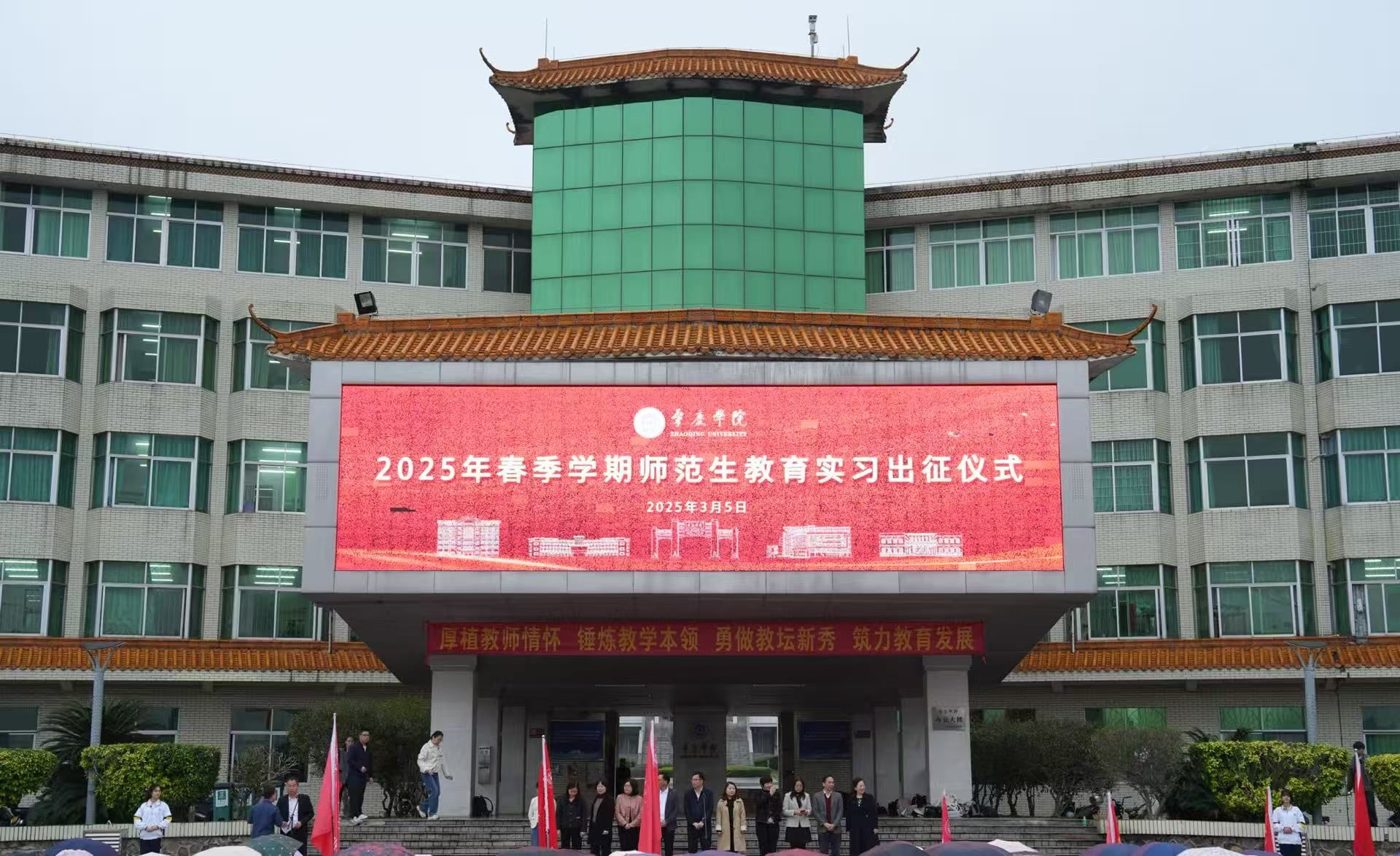 仪式上,党委书记谢冠华代表学校,向辛勤耕耘的砚园师生表示衷心谢意和新学期的问候。对即将出征的同学们强调,实习过程中应注意遵守纪律、注意身体健康及安全,并向同学们提出三点期望:一是做教育初心的“守护者”和“学习者”。在教育实践当中体验、感受和思考教育的理想与初心是什么。二是做乡村振兴的“筑梦师”。通过教育实习,将知识播种心田,以光明激发灵魂,点燃孩子们的梦想,这是教育的真谛。三是做教学创新的“破壁人”。善用新的技术,善用新的教法,将教育创新推行到实习学校。同时,他强调,学校将持续深化校地协同育人机制,为师范生成长搭建更广阔平台。