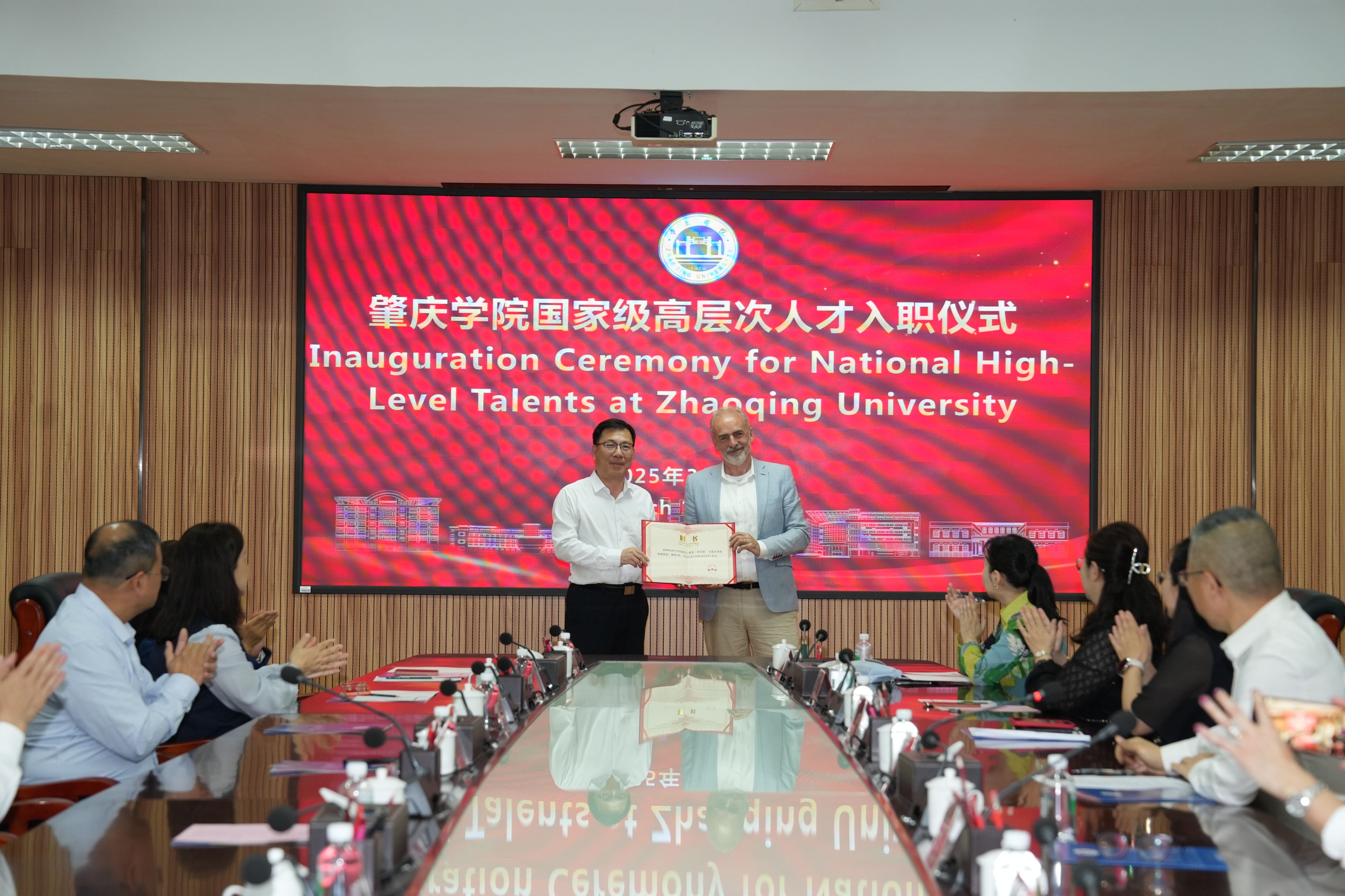 仪式最后,谢冠华为Schippers教授颁发了肇庆学院特聘教授聘书。