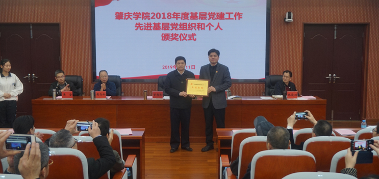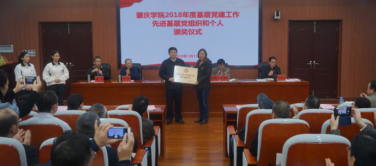 会前,学校对2018年获得“全国党建工作样板支部”“全省教育系统党建工作先进集体”“全省党建工作标杆院系、样板支部”“全省大学生党员暑期社会实践活动优秀团队”“市直机关基层党建示范点”“省高校党建研究会优秀党务工作者、优秀论文”等奖项的集体和个人颁奖及授牌。