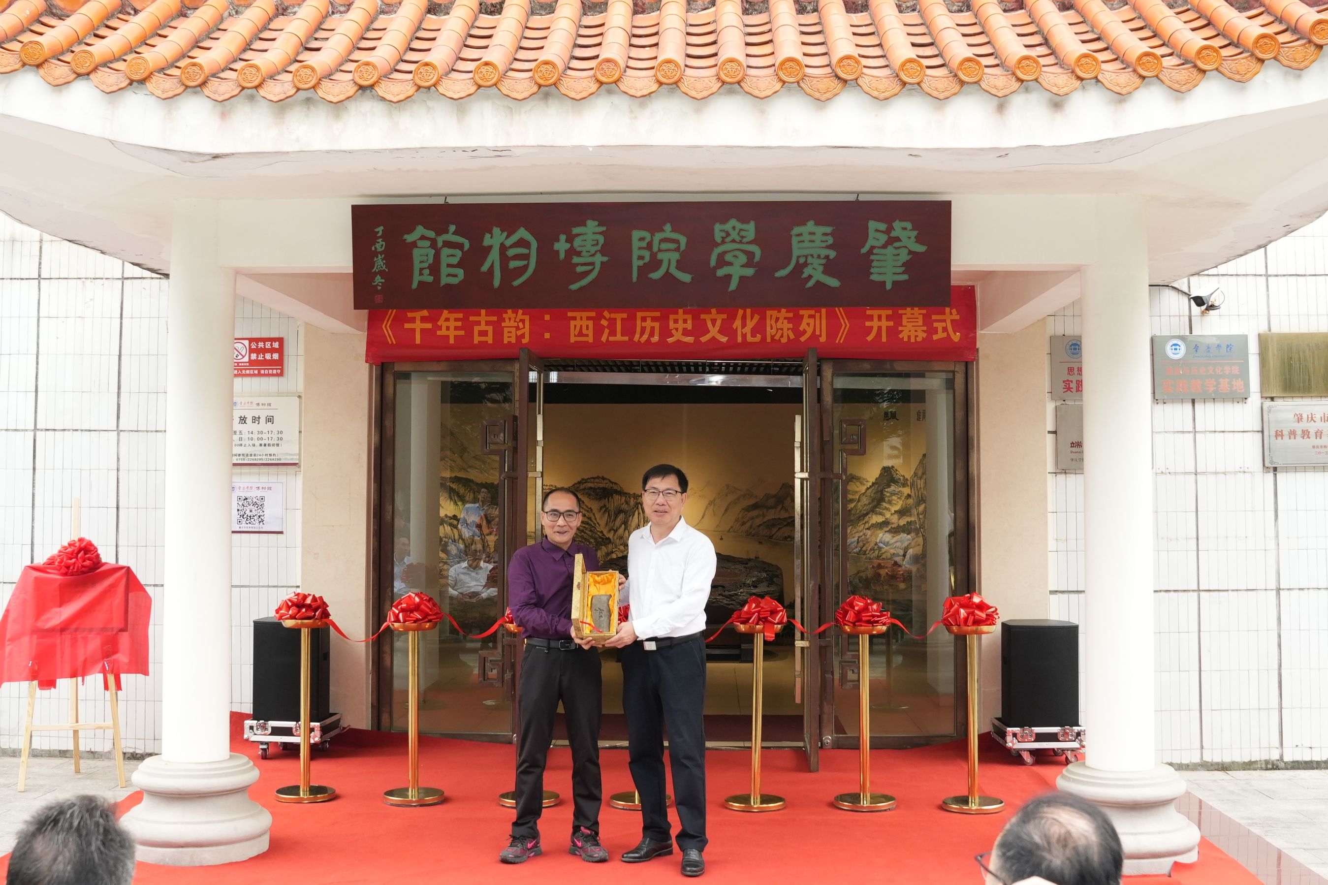 本网讯 3月28日,由肇庆学院博物馆主办的“千年古韵:西江历史文化陈列”展览在校博物馆举行开幕式。校党委书记谢冠华、副校长肖起清,肇庆市政协原副主席黄新华,校相关部门领导、师生代表,以及广州、佛山、肇庆、江门、云浮等地文博界和收藏界专家近百人参加活动。