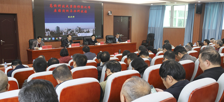实地考察后,耿战修为我校师生作讲座。全体中层领导干部,科技园创业团队和企业代表等参加,副校长林俊睦主持。