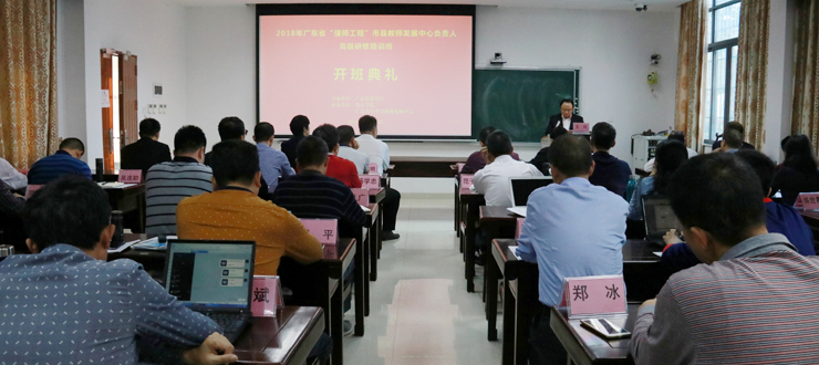 本网讯 12月5日,广东省中小学教师培训专家肖起清工作室揭牌,同时,由省教育厅主办、我校省级中小学教师发展中心承办的2018年市县级教师发展中心负责人高级研修班在我校开班。广东省委教育工委委员、省教育厅副厅长王创出席名师工作室揭牌及研修班开班仪式。校党委书记曾桓松,市教育局局长彭银祥出席,来自全省51名各市县级教师发展中心负责人参加。