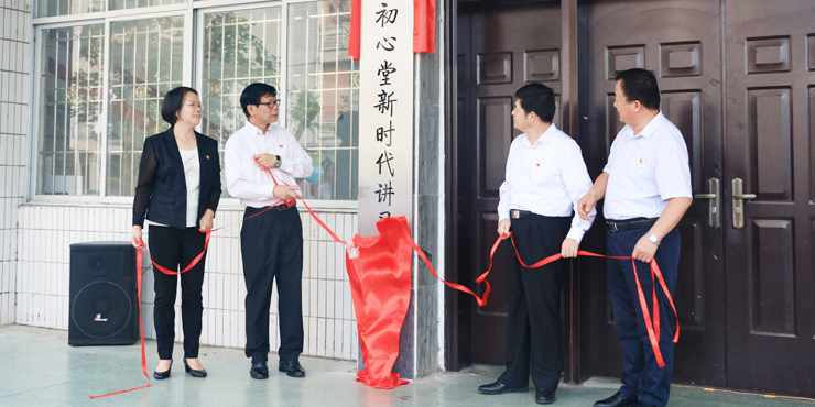 本网讯 11月12日,我校“初心堂”新时代讲习所挂牌仪式在学生活动中心前举行,校党委书记曾桓松,校党委副书记叶峥嵘,校党委委员、党办院办主任朱为鸿,校党委委员、机关党委书记沈钦萍共同为“初心堂”揭牌。党委办、组织部、纪委办、宣传部、学工部、教师工作部、团委主要负责人,及二级党组织组织委员、二级学院专职组织员、砚园青马100党支部学生党员代表等参加。校党委委员、组织部部长欧洪湛主持揭牌仪式。