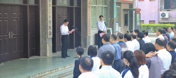 曾桓松致辞,他表示,“初心堂”建设是我校深入学习贯彻党的十九大精神,认真贯彻落实中组部、教育部党组,以及市委关于建设“初心堂”新时代讲习所有关要求,扎实落实广东省加强党的基层组织建设要求的重要举措,对于我校全面加强基层党组织建设、完善党员教育阵地有着重要作用。曾桓松就“初心堂”建设提出几点要求,一是充分认识“初心堂”作为新时代讲习所的重要意义,充分发挥“初心堂”思想引领和活动凝聚的阵地作用。二是管好用好“初心堂”,依托“初心堂”广泛组织开展各种形式的党组织生活。三是各二级党组织要统筹使用“初心堂”和党员活动室,以新方法新作为新气象扎实做好我校基层党建工作。他希望广大党员干部、党务工作者,以“初心堂”揭牌为契机,不忘初心、牢记使命,不断推动我校基层党建工作上新台阶,努力推动习近平新时代中国特色社会主义思想在肇庆学院落地生根、结出硕果。