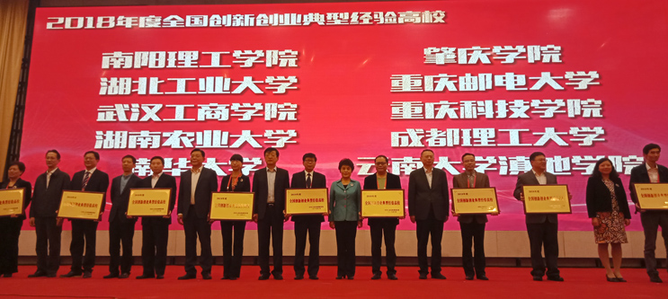 本网讯 近日,教育部在浙江杭州举办2018年高校毕业生就业创业研讨会暨2018年度全国创新创业典型经验高校经验交流会,总结一年来全国高校创新创业工作,表彰50所全国创新创业典型经验高校。教育部副部长林惠青出席会议。校党委副书记叶峥嵘代表我校参加会议,并接受全国创新创业典型经验高校牌匾。