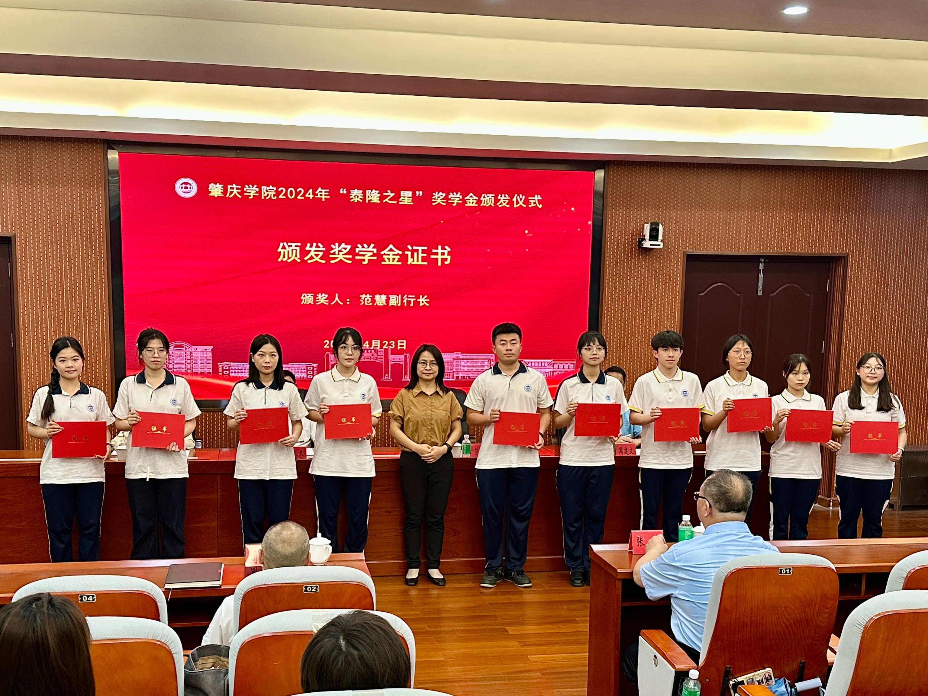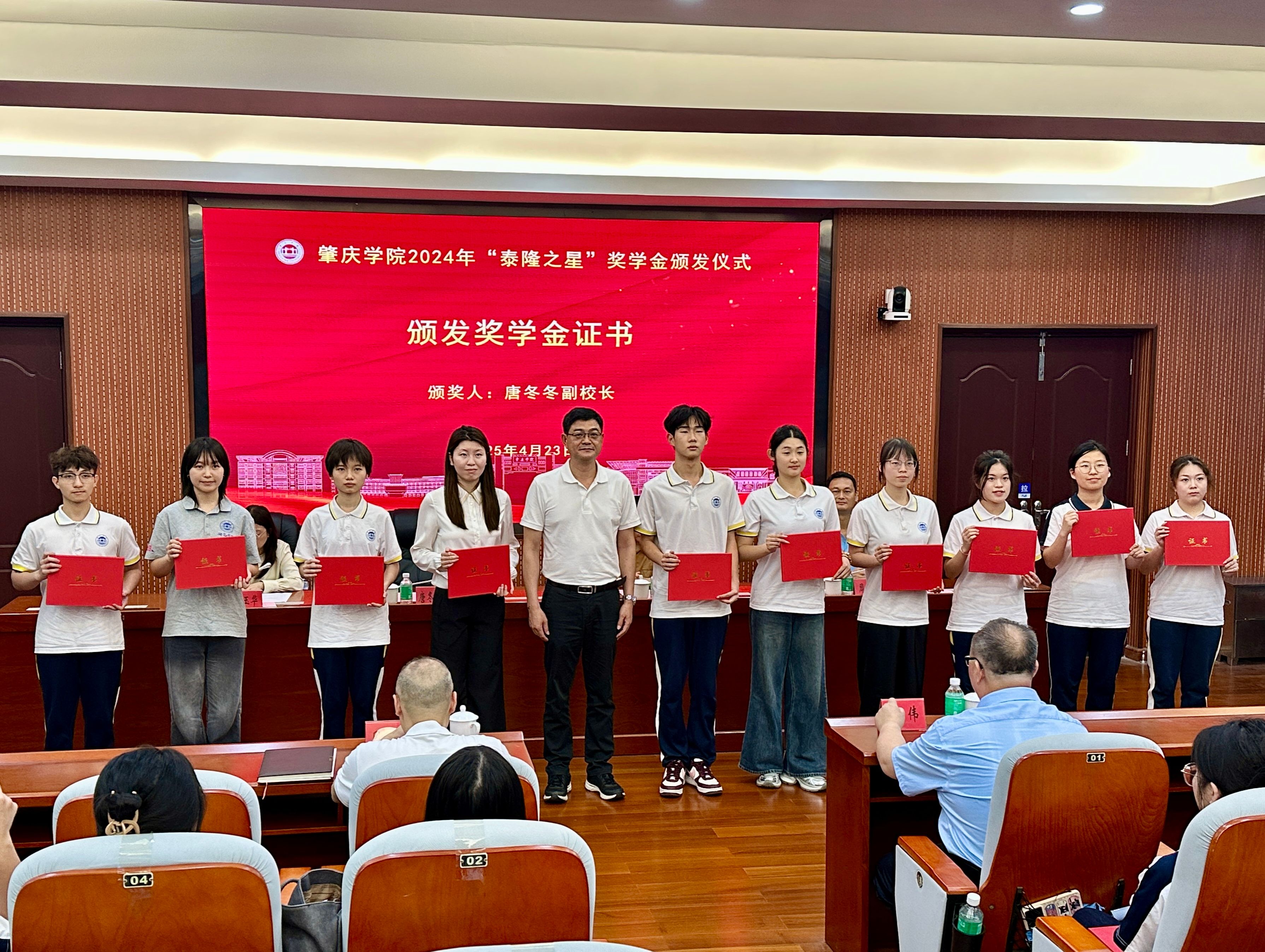 本网讯 4月23日,学校举行2024年“泰隆之星”奖学金颁发仪式。志愿单位广东四会泰隆村镇银行副行长范慧、肇庆学院副校长唐冬冬及相关职能部门负责人出席活动。仪式由学生工作部(招生与就业指导中心)部长陈玉华主持。