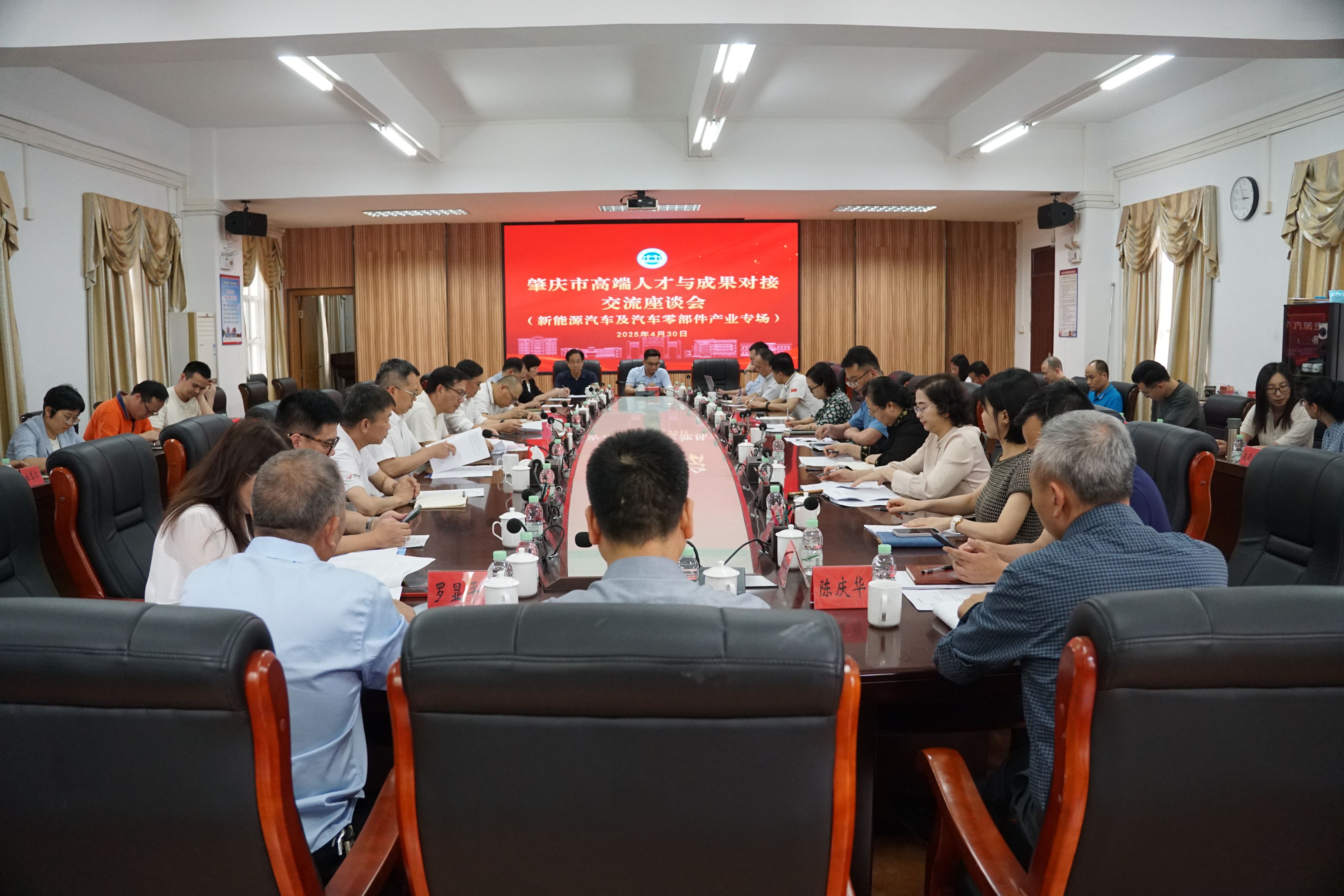 本网讯 4月30日,肇庆市高端人才与成果对接交流座谈会(新能源汽车及汽车零部件产业专场)在我校召开。学校党委书记谢冠华、副校长胡文涛出席,肇庆市科学技术局成果转化与区域创新科、肇庆市高新技术企业协会、新能源汽车及汽车零部件行业协会有关负责人以及企业代表,学校相关职能部门、二级学院负责人及教师代表参加会议。会议由胡文涛主持。