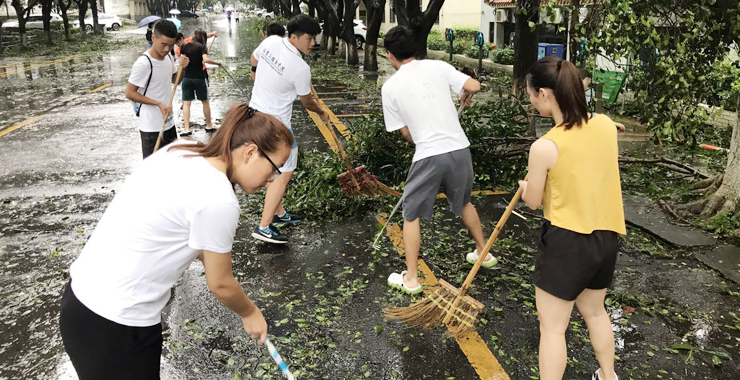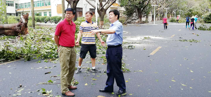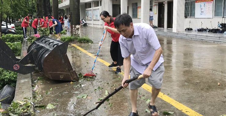 引言:9月16日来袭的超强台风“山竹”给我校校园带来严重的破坏。树木被折,花草被毁,各种校园设施受到不同程度的损坏,整个校园陷入一片狼藉。面对这种情况,校党委号召各单位各部门马上行动起来,以最快的速度恢复正常的教学生活秩序。在校党委的部署下,在各单位各部门的组织下,一场声势浩大的抗灾复产行动从9月17日起全面铺开。这时候,我们看到,一大批师生志愿者热情高涨,卯足干劲,投入到紧张忙碌的抗灾复产工作中。透过这些情景,我们深切地感受到师生们对于这所学校的热爱,对于这个家园的深情。我们相信,从这份热爱和深情中激发出来的凝聚力和向心力,一定会推动肇庆学院在由顺境和逆境组成的征程上乘风破浪,一往无前。