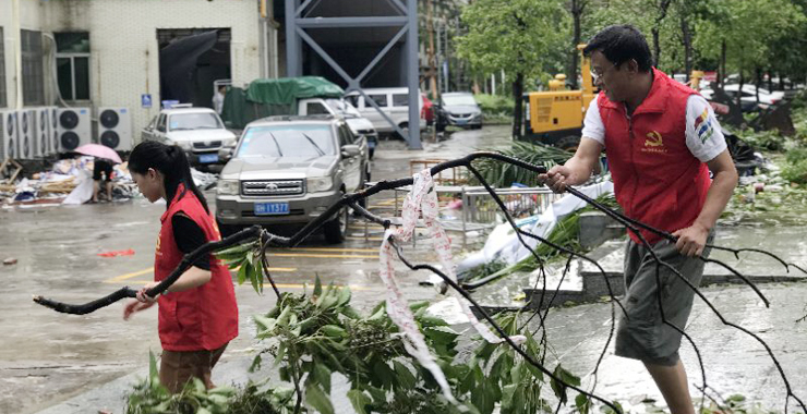 师生志愿者参与灾后清理工作