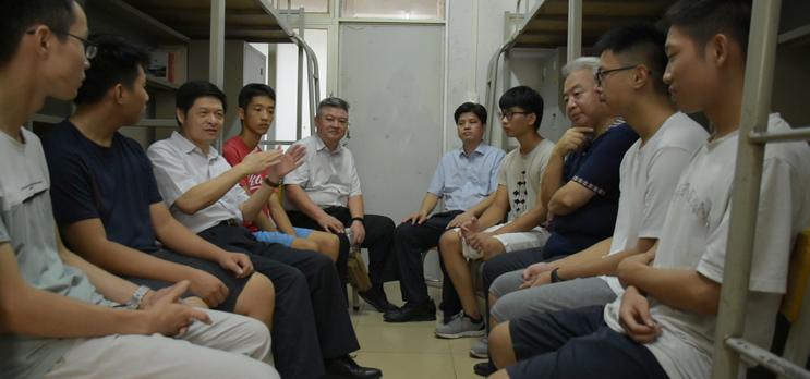 当天上午,校党委书记曾桓松、校党委副书记叶峥嵘、校党委副书记兼纪委书记黄劲松深入迎新现场,检查指导迎新工作。他们嘱咐各部门、各学院密切跟进新生报到情况,并希望大家拿出最大的热情做好迎新工作,为新生进校学习生活提供充分的服务和保障。当天下午,校领导曾桓松、叶峥嵘、黄劲松、王忠还走进新生宿舍,与新生亲切交谈,鼓励同学们尽快适应新环境、新生活,投入到人生的新里程中。