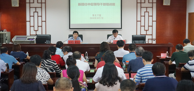 当天上午,校党委书记曾桓松出席培训班并作专题讲座,校党委副书记叶峥嵘主持,校党委委员、组织部部长欧洪湛出席,新提任的56名中层领导干部参加培训。