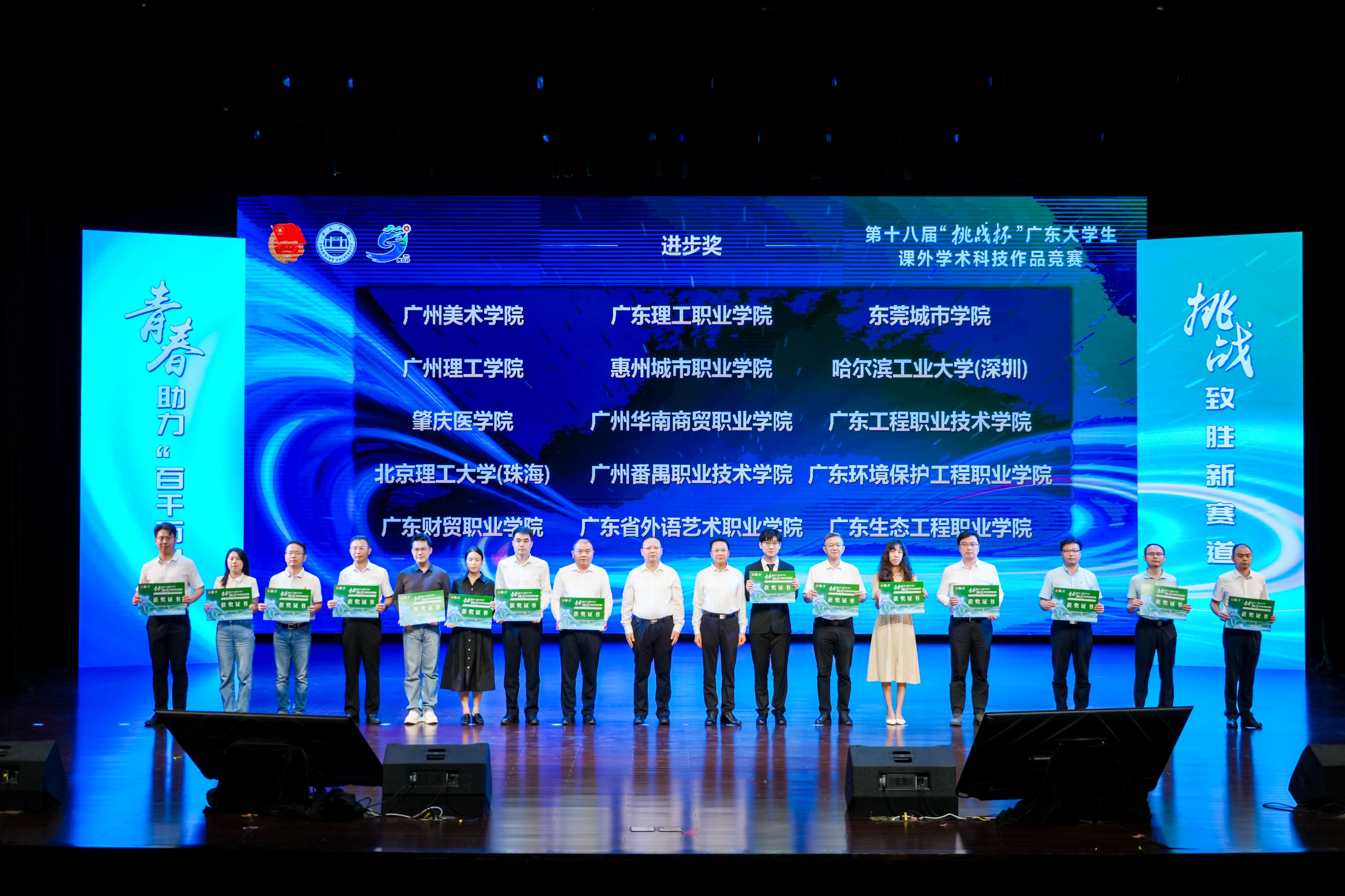 ▲广州美术学院、广东理工职业学院、东莞城市学院、广州理工学院、惠州城市职业学院、哈尔滨工业大学(深圳)、肇庆医学院、广州华南商贸职业学院、广东工程职业技术学院、北京理工大学(珠海)、广州番禺职业技术学院、广东环境保护工程职业学院、广东财贸职业学院、广东省外语艺术职业学院、广东生态工程职业学院等学校获得“进步奖”。