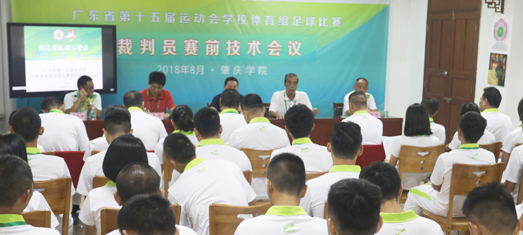 本网讯 8月10日,广东省第十五届运动会学校体育组足球比赛裁判组在我校召开赛前技术会议。会议要求裁判员以公平、公正的态度进行执法,严格管理,体现校园足球的风貌,同时要求裁判员认真工作,不辜负省教厅的重托,圆满完成裁判任务。
