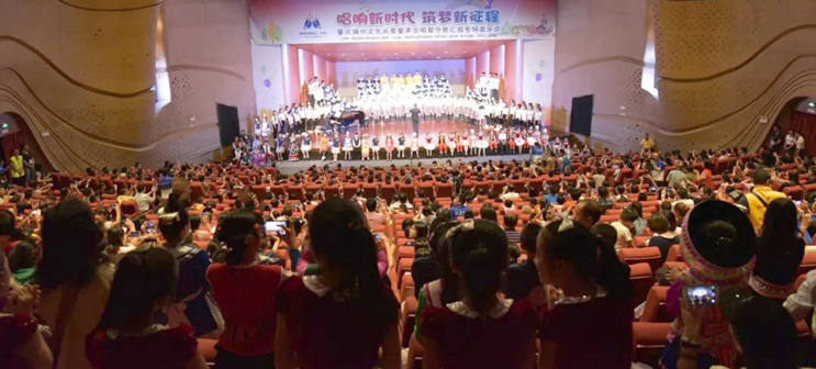 图片说明:7月30日晚,在我校剧场,一场汇报专场音乐会为肇庆端州文化关爱童声合唱夏令营划上圆满的句号。中国合唱协会副理事长兼秘书长李小祥,肇庆市副市长陈宣群,校党委副书记叶峥嵘,端州区委书记谢少迪、区长黎沛荣等领导嘉宾,与本次夏令营特邀合唱指挥孟大鹏、王希珍、郭志平、徐亮亮、胡漫雪、刁志君、雷雯霞一起出席活动,共同见证来自深圳、湖南、贵州、上海、广西以及端州多地的童声合唱团带来的精彩表演。(照片来自网络)
