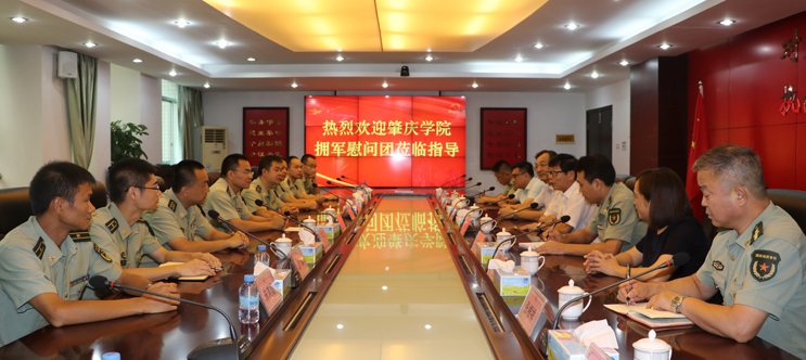 本网讯 7月24日,在“八一”建军节即将到来之际,校党委副书记叶峥嵘率拥军慰问团走访慰问肇庆军分区、肇庆市消防支队等单位,向驻军部队致以节日问候和崇高敬意,表达全校师生对子弟兵的深情厚谊。
