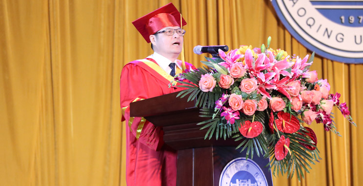 教师代表、环化学院院长郝向英致辞,向毕业生送上诚挚的祝福,并勉励同学们不忘初心,砥砺前行。