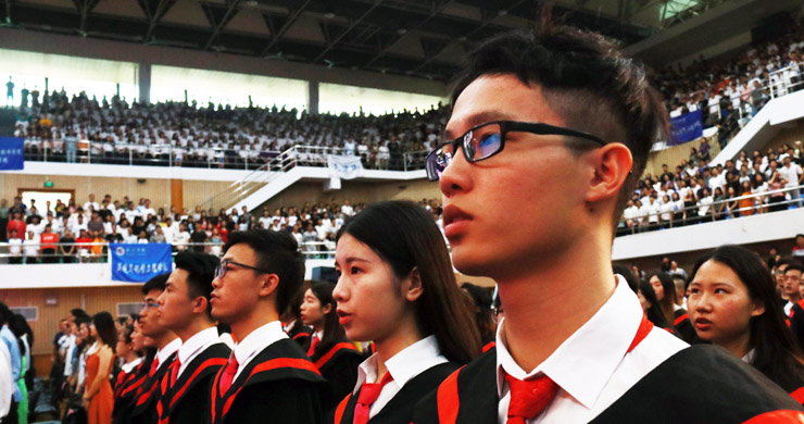 毕业典礼在雄壮的国歌中拉开帷幕。我校今年共有5304名本科生和343名专科生顺利完成学业,获得毕业。其中,5287名本科毕业生获得学士学位,包括278人获得双学士学位。学校在颁授毕业证、学位证的同时,还对557名德智体全面发展的优秀毕业生进行了表彰。另外,学校还特别向首批援藏支教的5名毕业生和第二批获选“援藏专招生”4名毕业生授予学士学位,以表扬这些同学“牢记时代使命、立志服务边陲”的奉献精神。