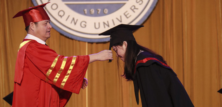 曾桓松为毕业生拨正学士学位帽流苏