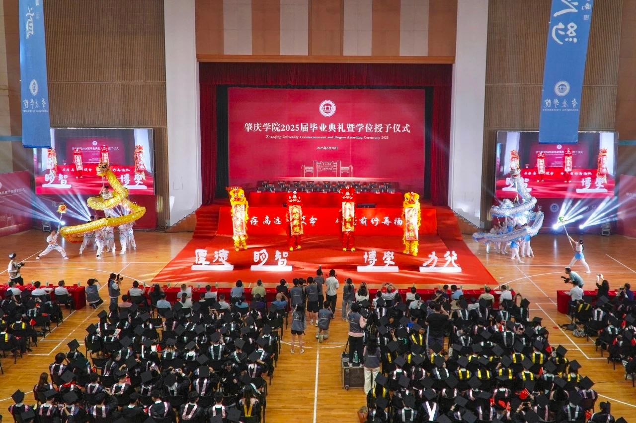 歌曲串烧、舞龙舞狮、舞蹈节目……这些氛围感满满的暖场节目,为毕业典礼增添了浓厚的氛围,更饱含着学校对毕业生们的深情祝福。下课铃声悠扬传来,为青春的最后一课画上了温暖又略带不舍的句号,今日的典礼不是终点,而是人生新篇章的扉页,走向的不是下一间教室,而是更广阔的人生天地。愿肇庆学院2025届毕业生在未来的征途中秉持“有梦想、有情怀、有温度、求卓越”的砚园品格,赓续“厚德、明智、博学、力行”的校训精神,争做堪当民族复兴重任的时代新人。