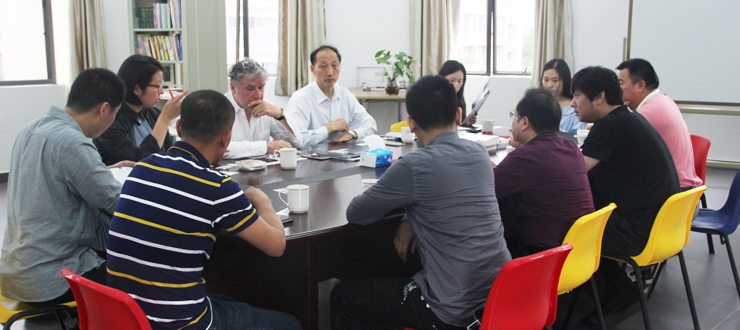 23日,梅纳特、和飞与东莞华南设计创新院及端州广工大协同创新中心副院长余宇、陈兴、饶高昶等进行交流座谈。和飞向客人介绍了我校中德设计学院的办学情况。和飞表示,中德设计学院全部专业课程由德方教师授课,采用德国授课模式,旨在将德国的高等教育特别是在工业设计、人才培养方式等方面的先进做法引进来,推进我校应用型人才的培养,为地方产业发展服务。余宇表示,广东工业大学与各地市政府合作,建立创新院和协同中心,在于更好把本地产业与大学资源结合,推进产学研合作,并为工业设计专业学子提供实践和创新创业的平台。梅纳特介绍了欧洲及德国培养工业设计人才的做法,他表示,中国目前有良好的转型发展环境,他希望通过合作办学共同培养工业设计领域的精英人才。会谈中,双方一致表示,中德设计学院与广工大艺术设计学院应该加强交流合作,在人才培养、平台协作等方面相互促进,互惠互利。
