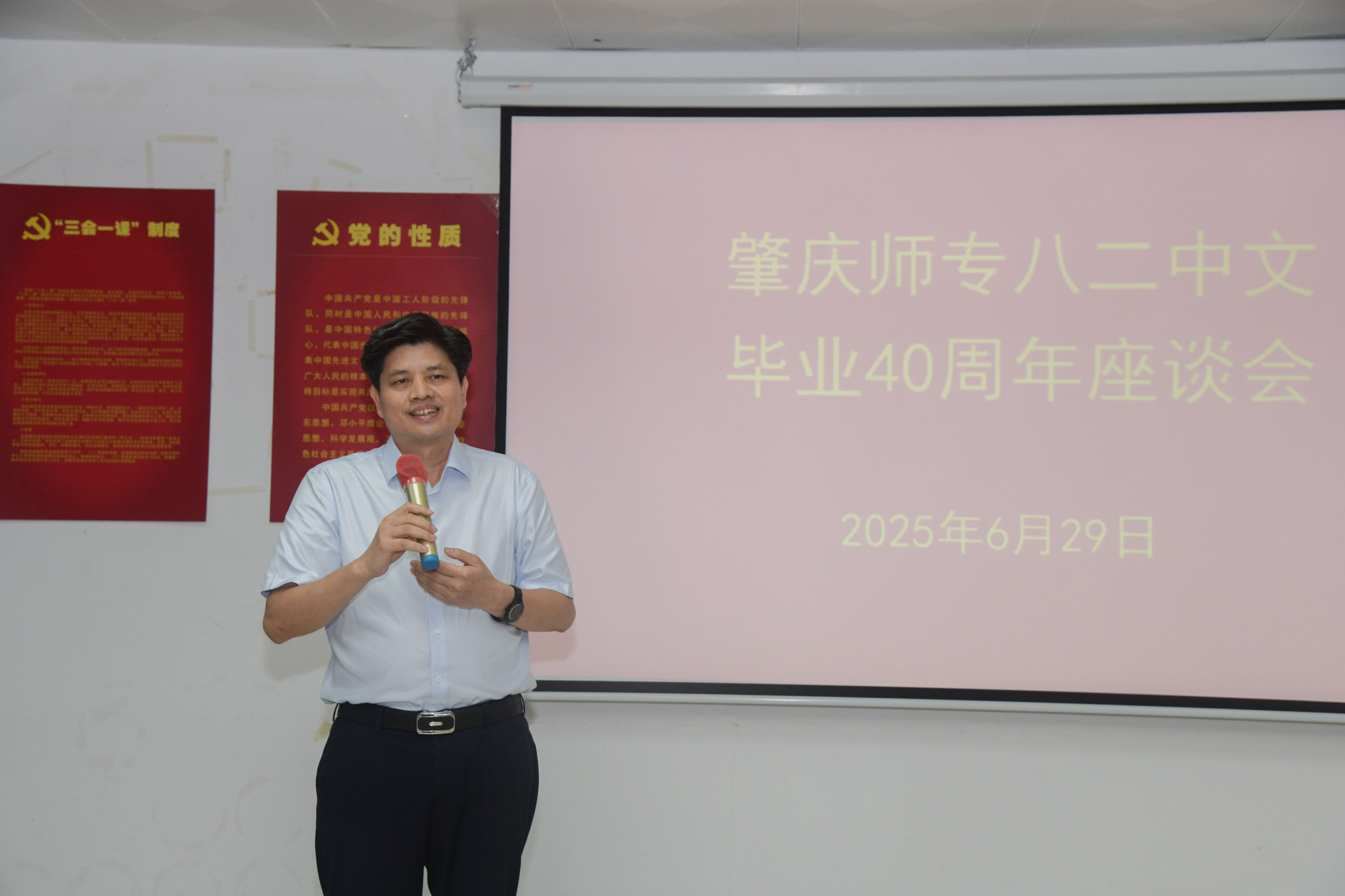校党委副书记欧洪湛出席活动。82中文班主任黎维贤老师应邀来到现场,分享师生重逢的喜悦。学校校友会基金会秘书长周建文、院长杨红军参加座谈,学院党委书记陈伟林主持。