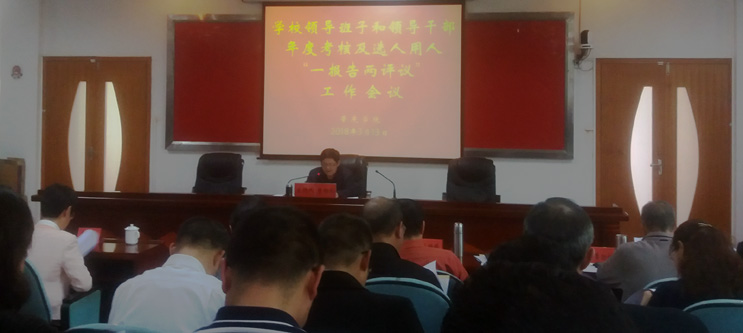 与会人员分别对校领导班子及领导干部2017年工作情况进行民主测评,对学校2017年选人用人工作及新提任的中层干部进行民主评议。