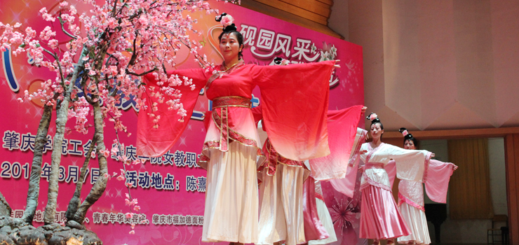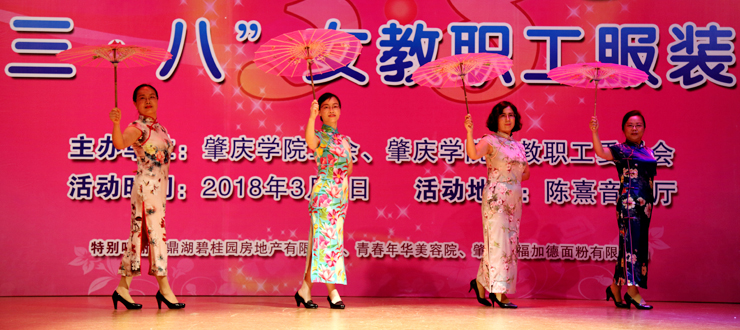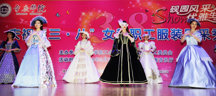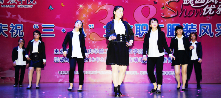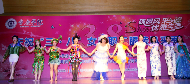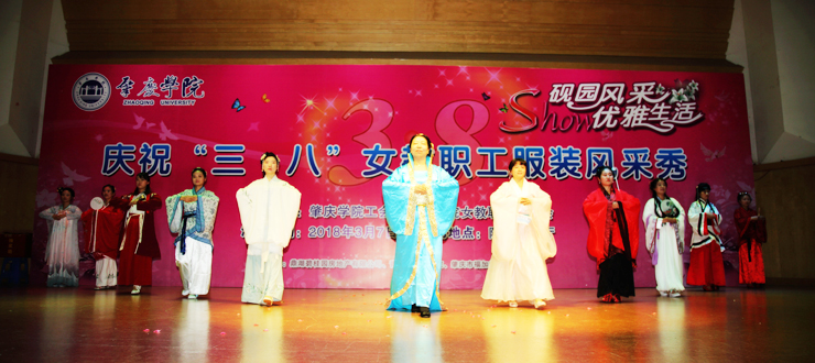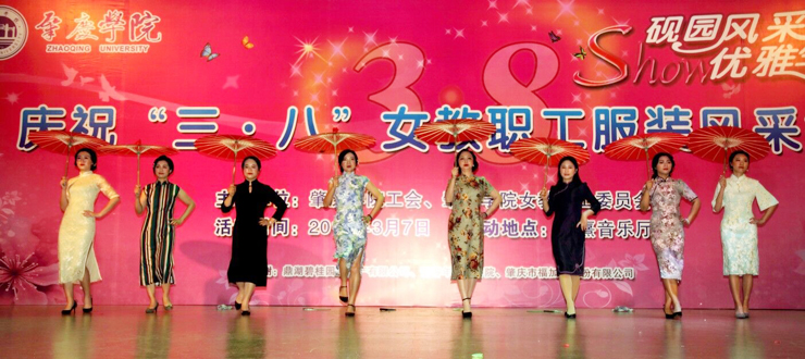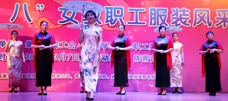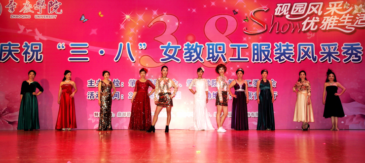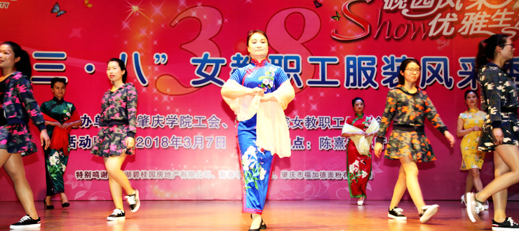 演出开始后,20个分工会的作品依次登上舞台。美术学院的《民国风情秀》,激扬着女性清新活泼、成熟典雅的韵味;文学院的《秦淮景》,体现了传统文化深厚的学蕴和飘逸的才情;音乐学院的《化妆舞会》,极尽其能地表达着服装艺术的想象力和创造力;环境与化学工程学院的《汉韵华仪》,以汉服的华美外观反映了汉代的盛朝气象;教育科学学院的《时代秀》,突出表现服饰对于时代更替、文化变迁的生动写照;政法学院的《最美》,显示出在精神上追求美、在行动中塑造美的人格力量;经济与管理学院的《丝彩飞扬》,在服饰的变化中描绘了多彩的生活;机关的《走时光隧道 圆绿色梦想》,寄托了人们对于美好明天的无限向往;生命科学学院的《汉锦绣》,在服饰中再现了盛况空前的大汉风貌;计算机学院的《水墨南亭风 诗意砚园情》,表演中贯穿了肇庆学院人爱校的情感、兴校的决心;电子与电气工程学院的《七彩中华》,透过民族服装的华丽色彩,折射出中华民族的瑰丽前程;机械与汽车工程学院的《十里桃花香满园》,以春天的景致代表崭新的时代,以美丽的服饰承载幸福的生活;外国语学院的《唯ME秀》,用镜头聚焦爱岗敬业、充满活力的女园丁;数学与统计学院的《塑我风采》,通过服饰的选择和搭配,抒写了当代女性的自信与自立;食品与制药工程学院的《烟花三月》,虚拟出花团锦簇的情景,创造了美轮美奂的感觉;马克思主义学院的《荷塘月色》,既借景抒情,又以情塑景,情景交融,美不胜收;旅游与历史文化学院的《最炫民族风》,通过精心的编排、动感的表演,把少数民族率真、豪迈的性格表现得淋漓尽致;图书馆的《江南之恋》,用服装的故事演绎了对于故土家园的真挚情怀;后勤管理处的《律动三月情》,在春天的季节里倾诉摇曳的情思,放飞辉煌的梦想;体育与健康学院的《伊揽芳华》,以明快的旋律、跃动的舞步、创意的装束、夸张的造型,合成出缤纷的画面,释放出青春的气息。最后,古筝合奏《青花瓷》和广场舞《梦中的兰花花》等两个嘉宾节目为当天的演出画上完美的句号。