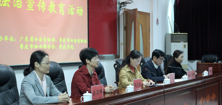 此次活动由我校与广东省女法官协会、肇庆市女法官协会、肇庆市妇女联合会和端州区法院共同举办。广东省高级人民法院副院长谭玲,我校党委副书记叶峥嵘,肇庆市妇女联合会党组书记、主席宗亚峰等领导出席本次活动开幕式。