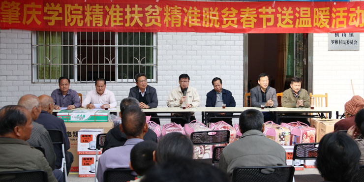本网讯 1月22、24日,校领导曾桓松、和飞、叶峥嵘、黄劲松、周苏平、王忠、林俊睦前往我校对口扶贫点广宁县横山镇,开展扶贫帮困“迎新春•送温暖”活动。他们一方面与当地政府部门领导一起研究如何进一步筹集扶贫资金,落实扶贫项目,另一方面为上百户困难群众送上慰问金、慰问品,向乡亲们带去新春的问候和祝福。党办校办、机关党委、组织部、宣传部、纪委办、科技处、人事处、财务处、工会等职能部门负责人随行参加活动。