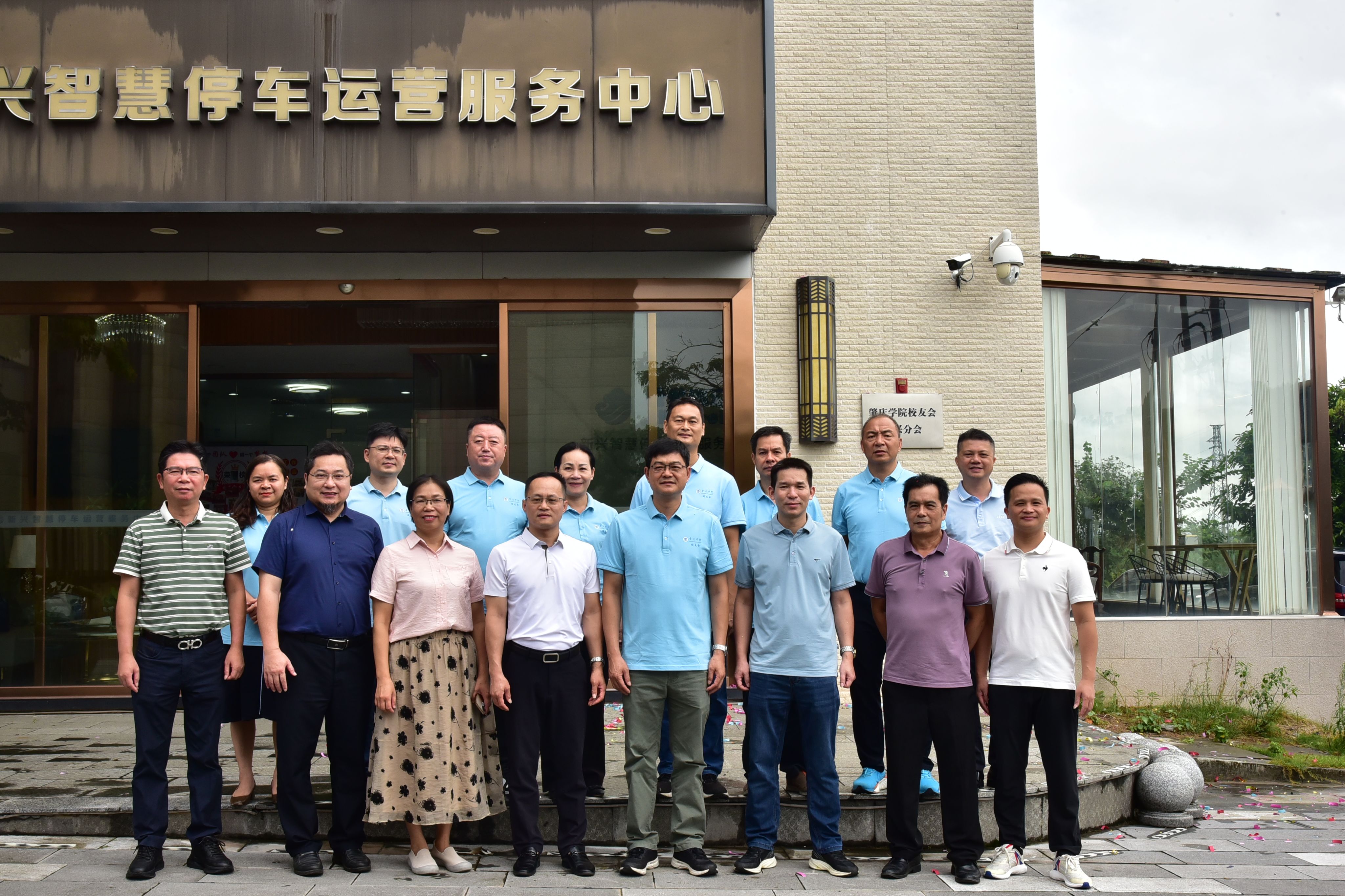 活动伊始,分会揭牌仪式在新兴县智慧停车运营中心举行。在庄重热烈的氛围中,“肇庆学院校友会新兴分会” 牌匾正式揭幕。这一实体阵地的建立,为新兴地区校友提供了专属的联络交流空间,为常态化开展校友活动、深化情感联结和资源对接筑牢根基。