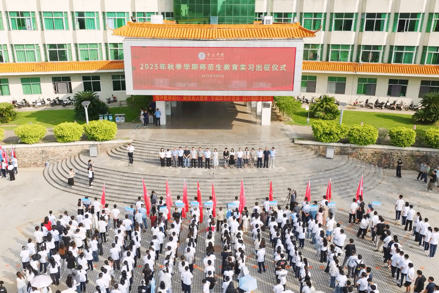 本网讯 9月4日,2025年秋季师范生教育实习出征仪式在国砚广场举行。校长李琴出席,副校长肖起清主持,相关职能单位负责人及二级学院院长、分管实习工作的副院长、教育实习指导教师和学生代表参会。