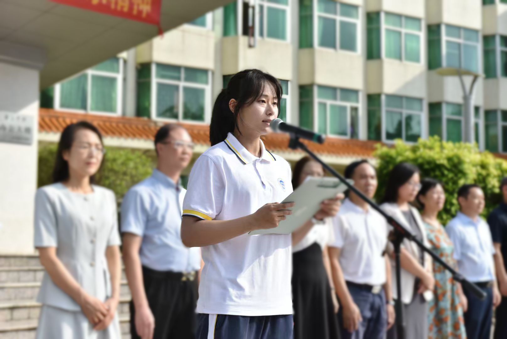 教育科学学院2022级应用心理学1班李妍琪作为学生代表发言,她表示,实习是从学生走向教师的重要桥梁,实习未必是“摸着石头过河”,而是带着老师们的经验去实践。她号召同学们在实习中体会教育真谛,用实践行动践行育人使命。
